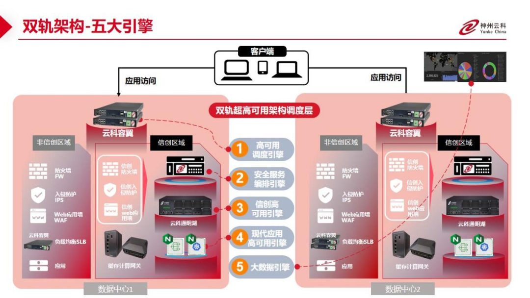 数据中心架构在自主创新的过程中分解为现有架构的非信创区和信创区的两个业务区域,在每个数据中心分为信创区和非信创区后,在两个区域之间的跨区跨域协同方法,3044am永利集团顺利获得5大引擎实现多层次的应用可持续性实践。